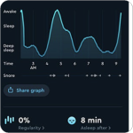 Because the haptic alert occurs under your pillow, you can configure it so that you can wake up without anyone else being affected by the alarm. SleepCycle rewards users with a sleep score, detailing how well they slept that night.