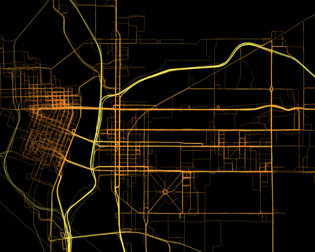 GPS Logs taken from Aaron Parecki's actual position every 5 seconds from 2008-2010 in Portland, Oregon.