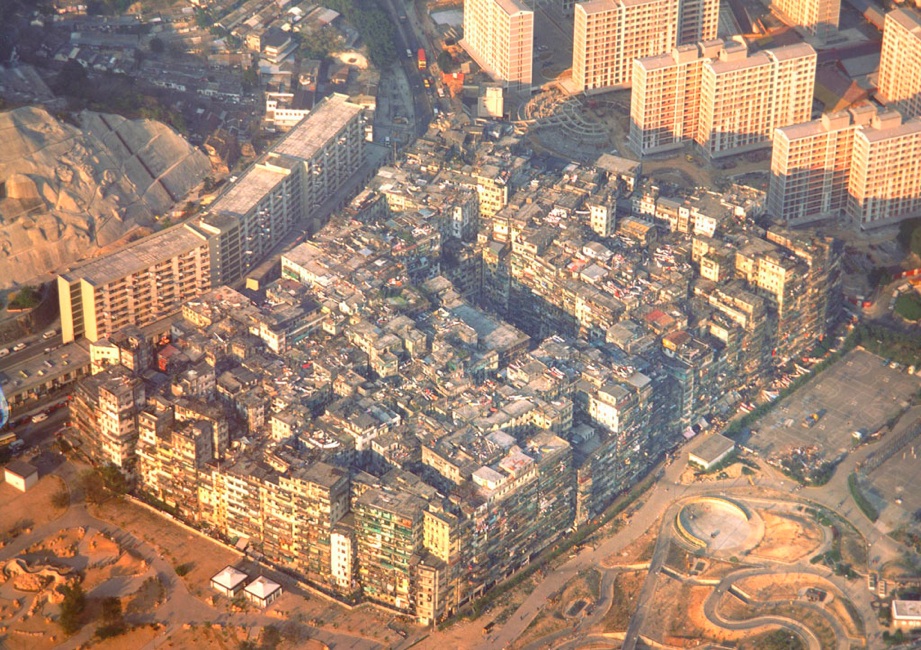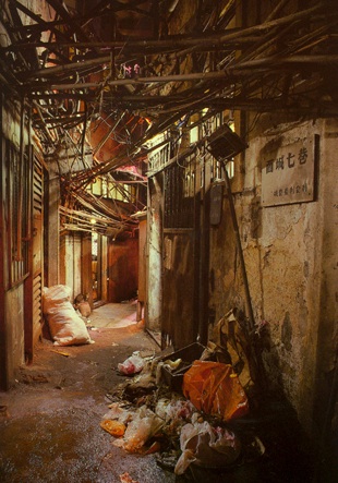 "Kowloon Walled City was a part of Hong Kong until 1993 when it was completely demolished and all residents relocated. Established originally as a watch post, Kowloon City turned into a haven for crime, prostitution, drug trade, and all sorts of black market trades in the 20th Century. It was a true anarchic squatter city reminding me of actual dystopia exhibited only in movies such as Blade Runner, but it actually existed as a tangible place". http://nioate.blogspot.com/2008/01/real-dystopia-kowloon-walled-city.html" [1].