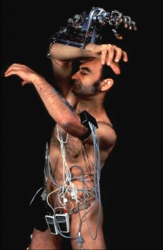"Stelarc is an Australian artist who has performed extensively in Japan, Europe and the USA- including new music, dance festivals and experimental theatre. He has used medical instruments, prosthetics, robotics, Virtual Reality systems and the Internet to explore alternate, intimate and involuntary interfaces with the body. He has performed with a THIRD HAND, a VIRTUAL ARM, a VIRTUAL BODY and a STOMACH SCULPTURE. He has acoustically and visually probed the body- having amplified brainwaves, blood-flow and muscle signals and filmed the inside of his lungs, stomach and colon, approximately two metres of internal space. He has done twenty-five body SUSPENSIONS with insertions into the skin, in different positions and varying situations in remote locations" [1], July 17, 2007.